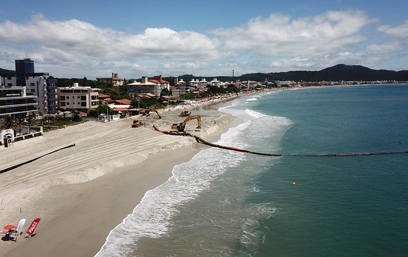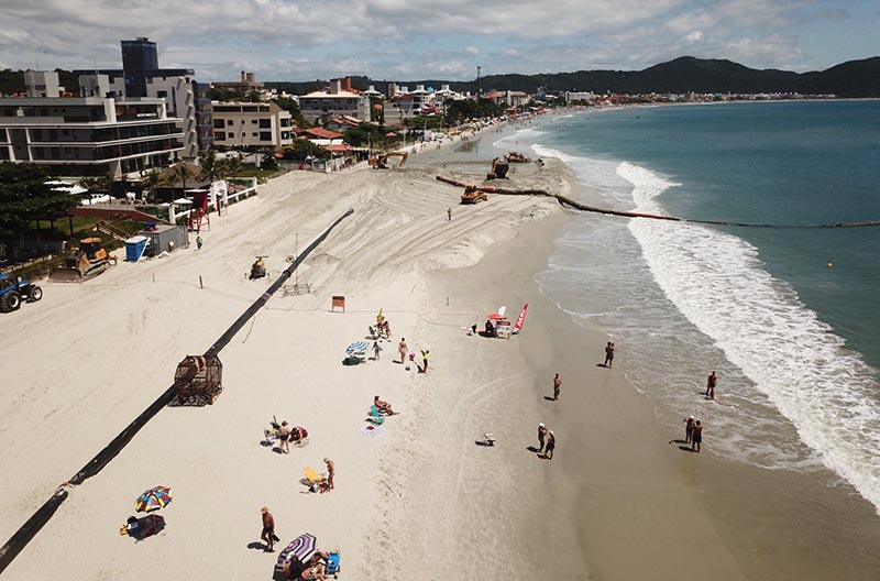 Em termos de extensão, o engordamento já beneficiou cerca de um terço dos 2,87 km a serem contemplados – que vão até 500 metros antes da foz do Rio Capivari, onde a praia tem aproximadamente 20 metros de largura. Mas o volume de areia dragado da jazida submarina que fica a um quilômetro da orla usado até agora corresponde à 49,35% do total previsto de 462 mil metros cúbicos. É que, para que o Canto Sul atingisse a largura de 45 metros, conforme previsto em projeto, foi depositado nesta área 227.997 metros cúbicos de areia.