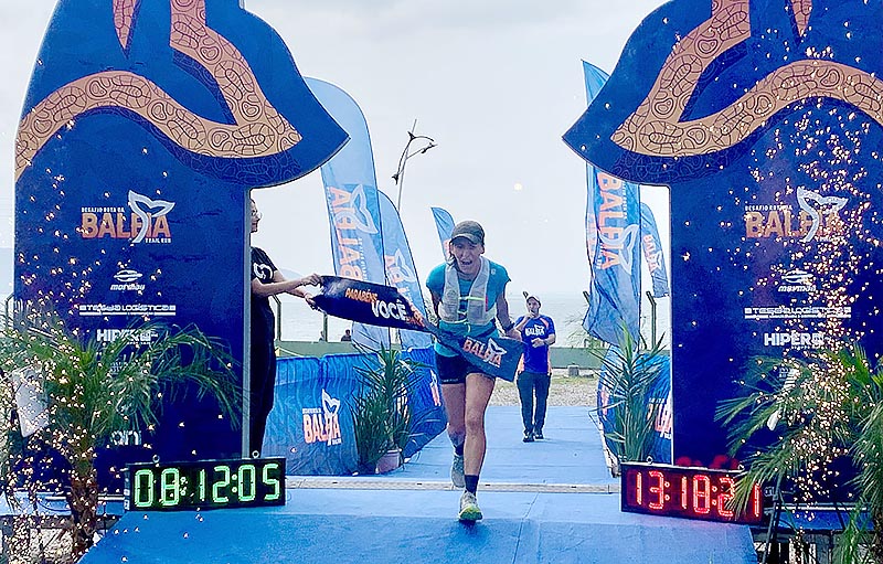 Às primeiras equipes do revezamento de 80 km concluíam o desafio, com a arena montada no Camping Lagoamar com um bom público, quando foi conhecida a campeã dos 80 km individual entre as mulheres do Desafio Rota da Baleia 2024. Juliana Uavnizack, de Pedras Grandes (SC), passou pelo portal de chegada com 8h12m02 no cronômetro e estabeleceu novo recorde da prova feminina.