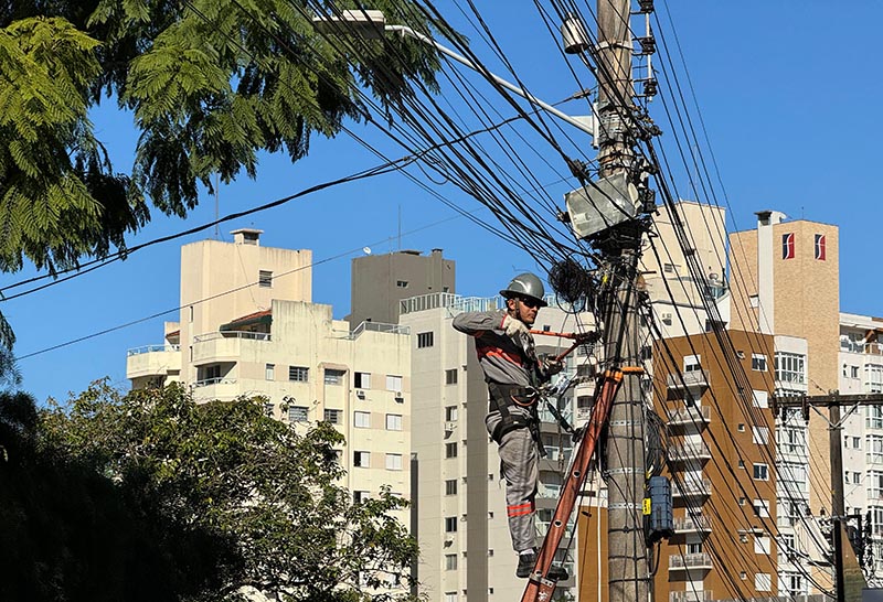 O excesso de fiação nos postes geralmente ocorre devido ao uso irregular da infraestrutura por empresas sem contrato com a Celesc ou por instalações feitas sem o projeto aprovado. Essas práticas não apenas aumentam a poluição visual, mas também afetam a tarifa de energia elétrica, já que 60% do valor arrecadado com o aluguel dos postes é destinado à redução da tarifa para os consumidores. Lembrando que a comunidade também pode reportar situações de risco, como cabos rompidos ou baixos, por meio do telefone 0800 048 0196.