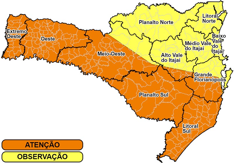 A partir de sexta-feira, 8, a frente fria começará a se afastar do estado, permitindo a volta do sol nas regiões do Grande Oeste e Planaltos. No Litoral e no Vale do Itajaí, a manhã poderá ter chuvas leves, mas o tempo tende a melhorar ao longo do dia. O fim de semana promete tempo firme e predominância de sol em todo o estado, proporcionando um alívio após os intensos eventos climáticos dos últimos dias.