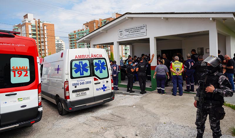 A equipe do Samu realizou a triagem dos presos, junto com a PMSC e o SAP, para verificação de mais feridos ou intoxicados. Todos os detentos do local receberam atendimento médico.