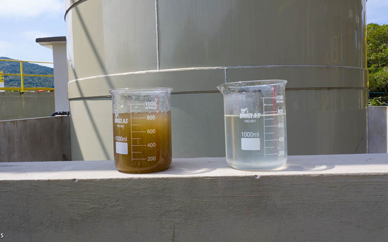O Tratamento Terciário termina então com a remoção de microrganismos causadores de doenças. Aqui, é utilizado o cloro gasoso, que não polui a água e elimina vírus e bactérias de forma eficiente. Só depois disso o efluente tratado poderá ser despejado no rio, colaborando com a purificação da água. No caso da ETE Ingleses, serão 105 litros de água por segundo retornando à natureza.