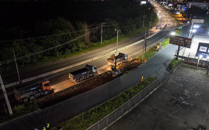 As obras na rodovia estadual mais movimentada de Santa Catarina começaram na noite desta segunda-feira, 17. O início dos trabalhos foi acompanhado pelo governador Jorginho Mello e pelo prefeito de Florianópolis, Topázio Neto. Os investimentos do Governo do Estado, através da Secretaria da Infraestrutura e Mobilidade (SIE), somam mais de R$ 73 milhões para execução de um projeto que vai transformar a via.