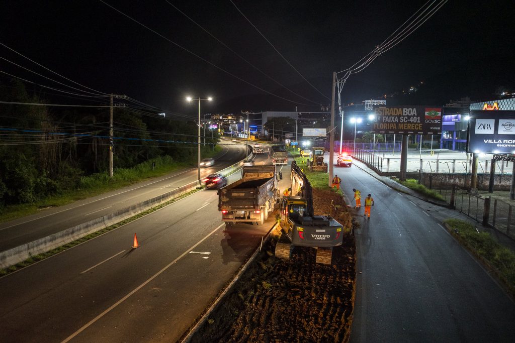 As obras na rodovia estadual mais movimentada de Santa Catarina começaram na noite desta segunda-feira, 17. O início dos trabalhos foi acompanhado pelo governador Jorginho Mello e pelo prefeito de Florianópolis, Topázio Neto. Os investimentos do Governo do Estado, através da Secretaria da Infraestrutura e Mobilidade (SIE), somam mais de R$ 73 milhões para execução de um projeto que vai transformar a via.