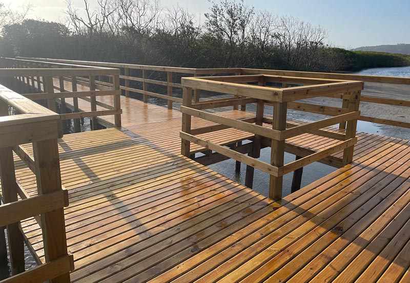 O novo deck pode ser acessado pelo estacionamento ao lado do condomínio residencial Marine Home & Resort, que fica localizado na Avenida Luiz Boiteux Piazza, nº 4.413. O novo equipamento teve cerca de 90% da fundação em escora de eucalipto refeita, e toda a estrutura de base como piso e guarda-corpo também de madeira renovados.