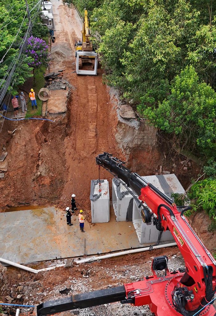 A cada dia, a Secretaria de Infraestrutura e Manutenção da Cidade aumenta a capacidade de trabalho nas frentes de asfalto, lajotas, drenagem e contenções. As ruas de lajota, principalmente em Sambaqui e Santo Antônio, sofreram muitos estragos. No Caminho dos Açores, onde ocorreu bloqueio da pista, por exemplo, já foi feita já toda parte de implantação, limpeza e começou a implantação das galerias naquele trecho.