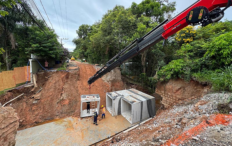 Outras obras importantes, como a Cruz e Sousa, na subida do Morro do Céu, o serviço ocorre em parceria com a Casan. Ali, o que causou o dano na drenagem foi a rede de esgoto, então operam duas equipes, uma da Casan outra do município, para restabelecer a condição de normalidade. Estão sendo feitos novos muros na Rua João Carvalho, trajeto da linha azul do Formiguinha, e também no alto da Caieira, outro ponto importante de mobilidade na região central.